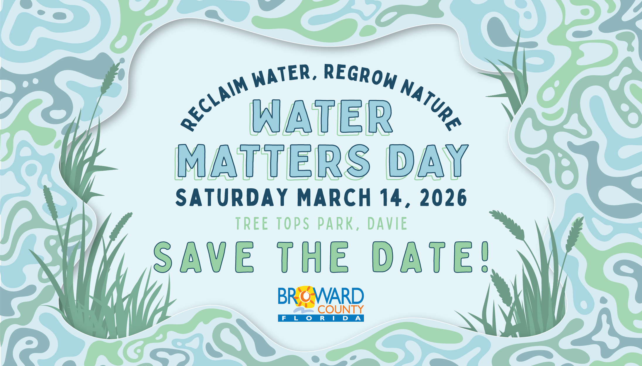 The next Water Matters Day will be held on Saturday, March 14th, 2026 from 8:00am to 1:00pm at Tree Tops Park (3900 SW 100th Ave, Davie, FL 33328)!